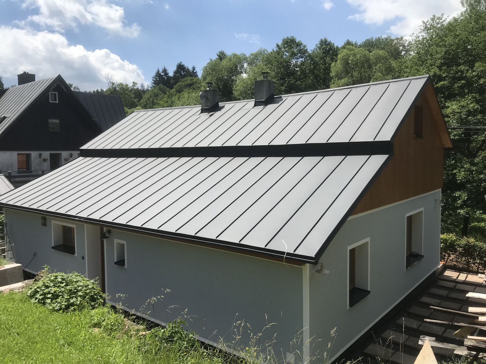 Rekonstrukce střechy, falcovaná krytina PREFA, RD Bernartice